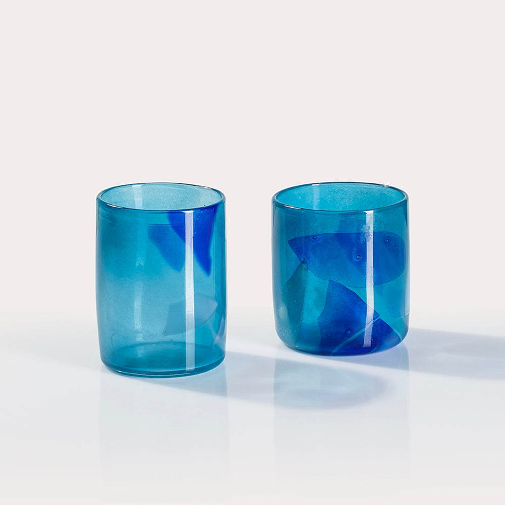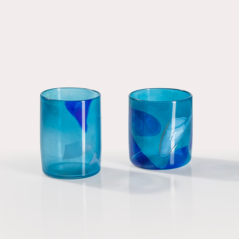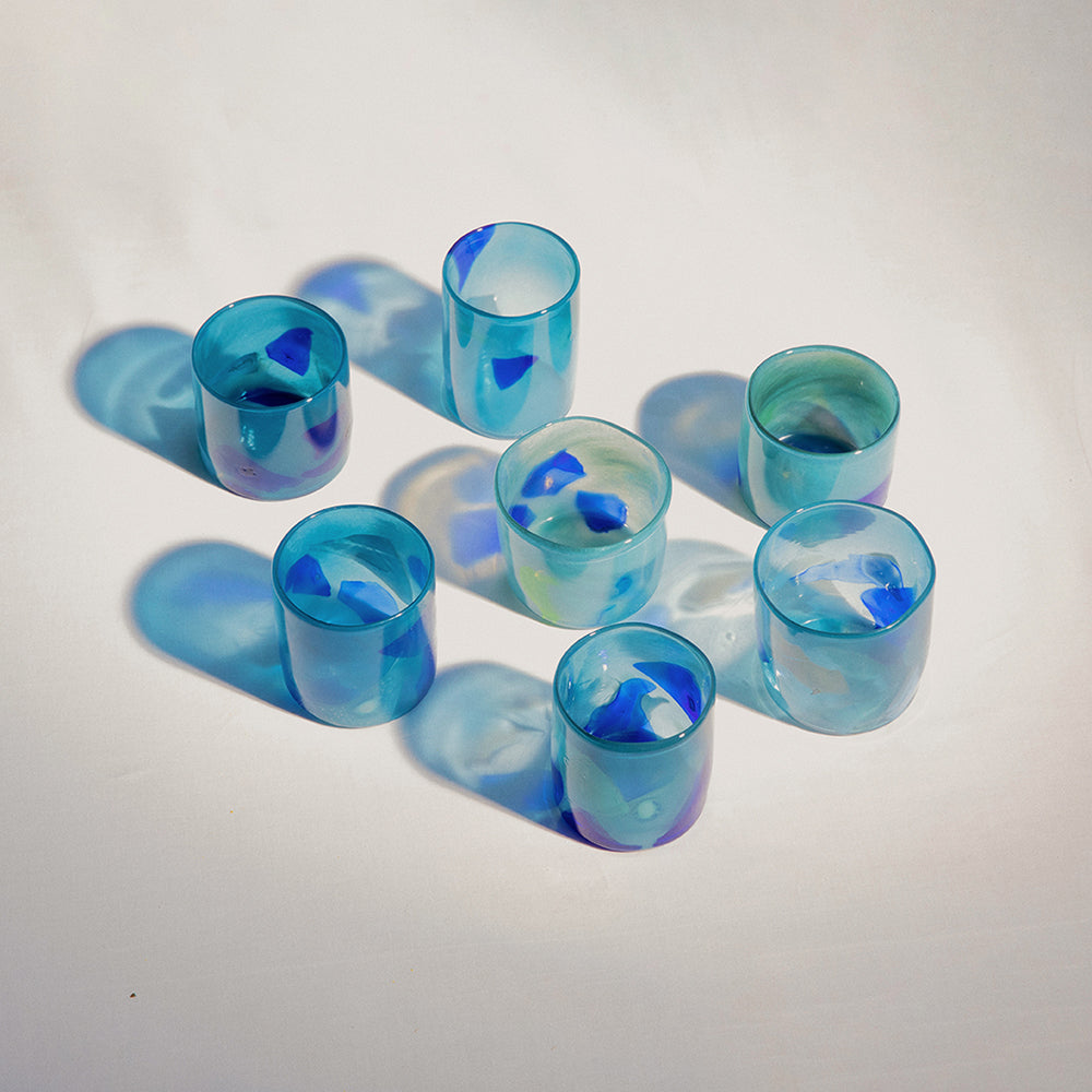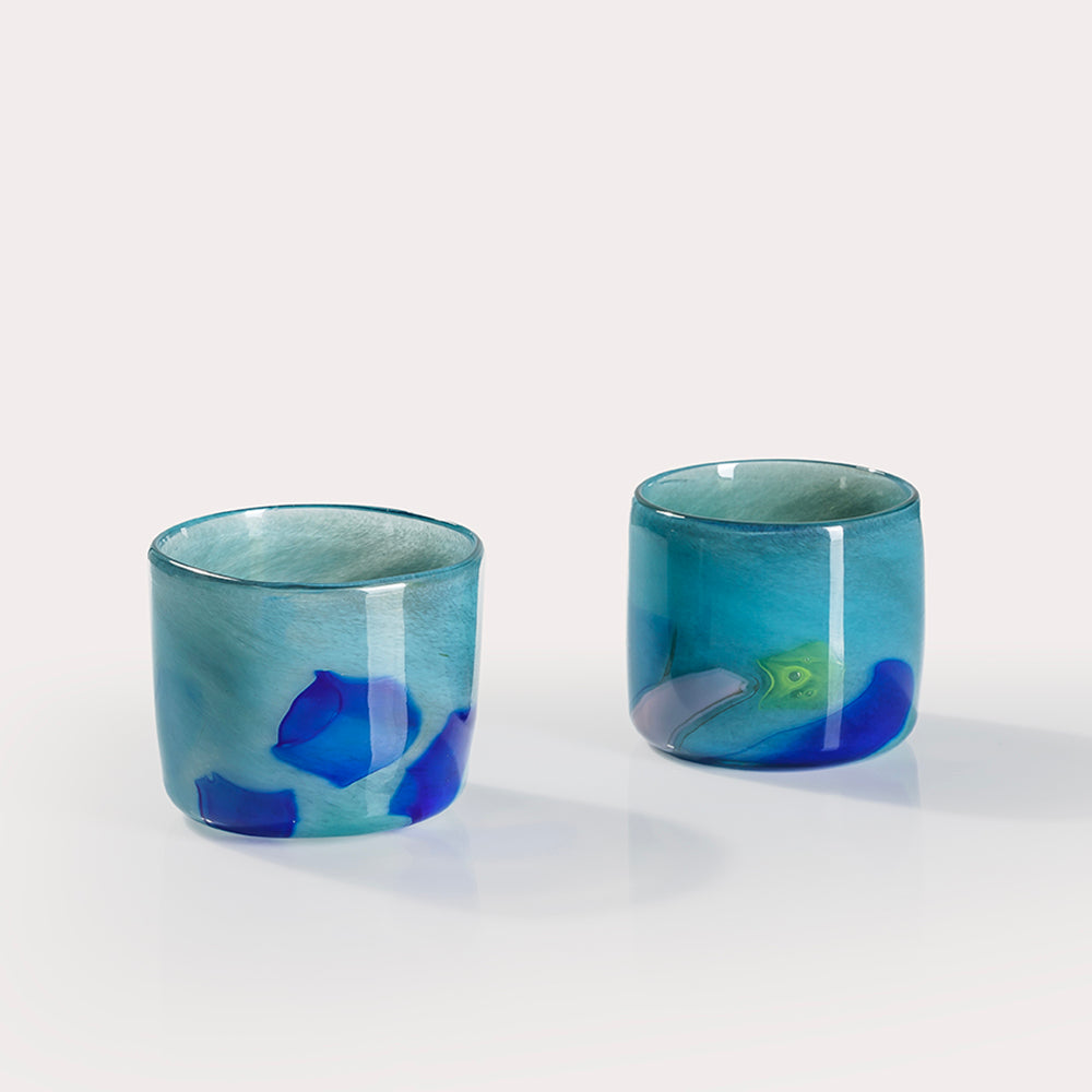 The cups you receive will not be identical to those pictured but will be very similar. Every cup is a one-of-a-kind due to the free- blown design process.